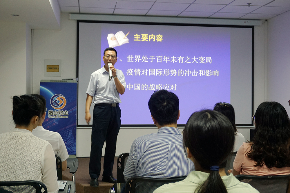 為助力集團干部職工拓展視野,增長知識,進一步認清當前國內(nèi)國際形勢,擔當使命,自覺應(yīng)對風(fēng)險挑戰(zhàn),7月23日上午,集團舉辦了第三期“財金大講堂”,開展國情黨情和形勢政策教育,邀請到中共煙臺市委黨校哲學(xué)教研室副主任、副教授劉中興帶來《當前國際形勢——疫情沖擊與戰(zhàn)略應(yīng)對》專題講座。