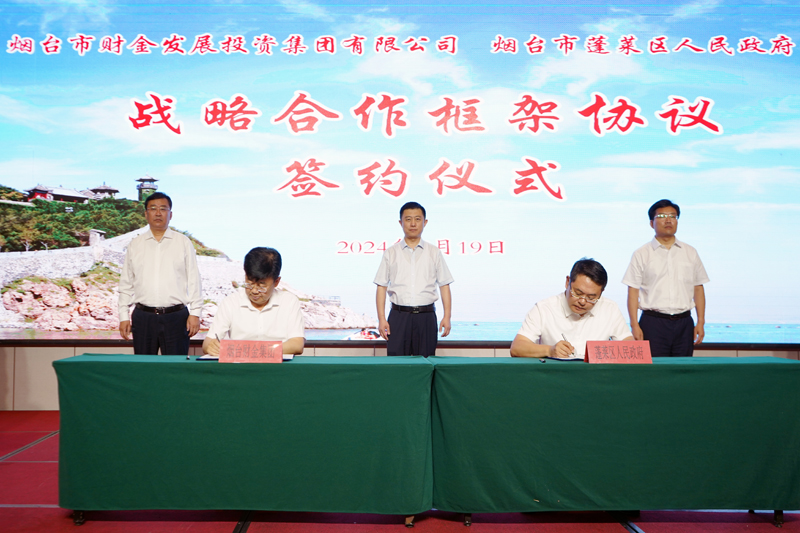 隨后,在與會全體領導的共同見證下,蓬萊區(qū)委常委、副區(qū)長田文良,煙臺財金集團黨委委員、副總經理修兆強分別代表雙方簽訂戰(zhàn)略合作協(xié)議。